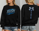 Show your support for Team Rush this cheer comp season with these cozy and cute sweatshirts. Made with a unisex style crewneck these fit like a relaxed women's shirt option. For an oversized look size up one. The sweatshirts are made with a cotton poly blend that is fleece lined.