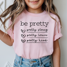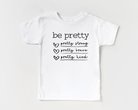 Empower your little lady to be her best self with our "Be Pretty" tee — because being pretty is about more than looks. This inspiring shirt reminds girls to be pretty strong, pretty brave, and pretty kind every day. Perfect for everyday adventures, it’s a sweet and meaningful addition to any young girl’s wardrobe.