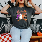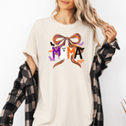 Gear up to be the most fun mom with this festive mama halloween tee. This cute and comfy spooky season favorite is perfect for pumpkin patching, haunted house adventures, or cozy nights watching thriller movies with your crew. The playful text features an adorable ghost and a trendy coquette bow that you can keep on rotation all fall.