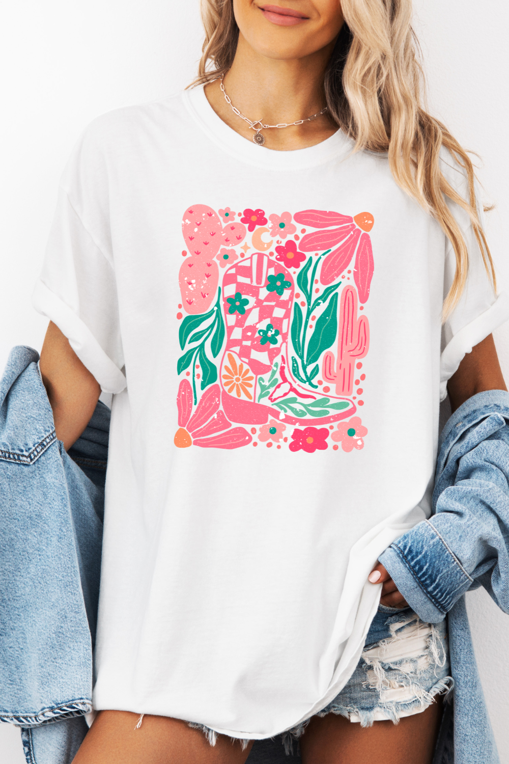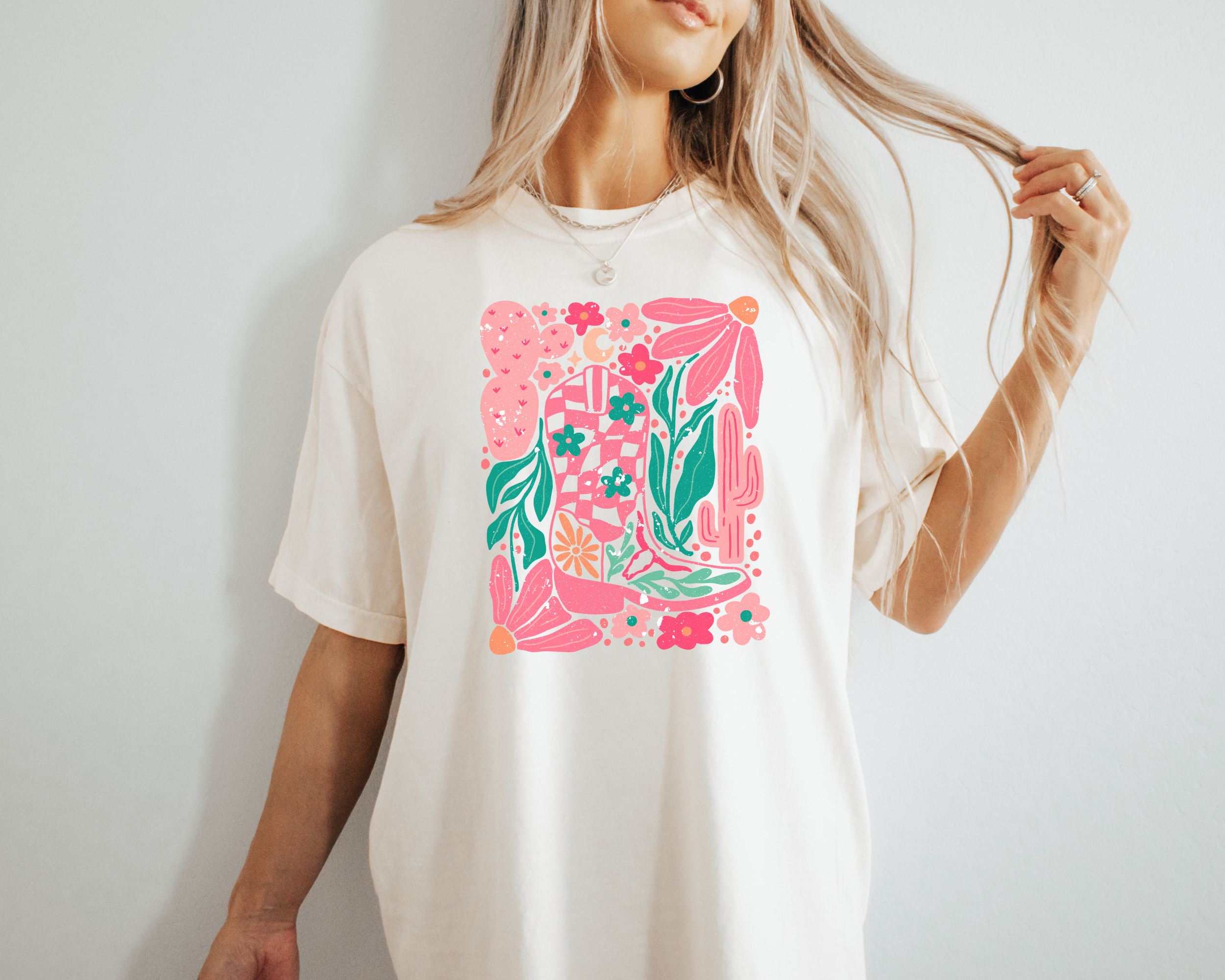 Floral cowgirl boot -- Comfort Colors tee